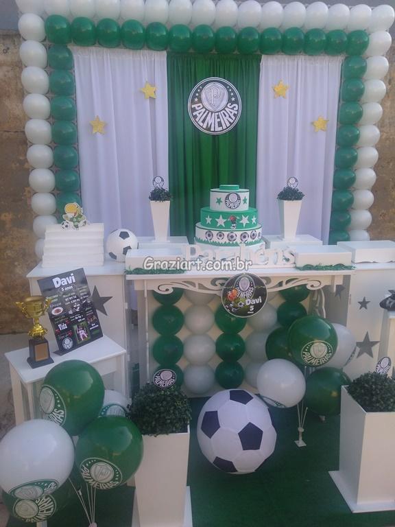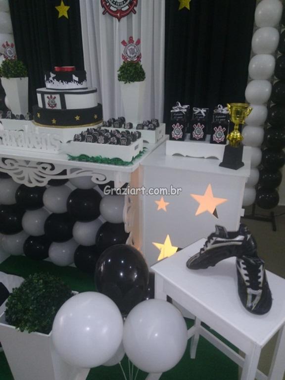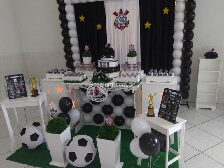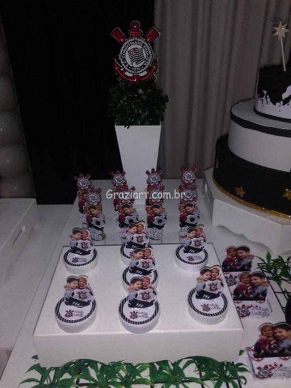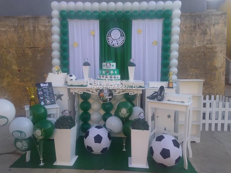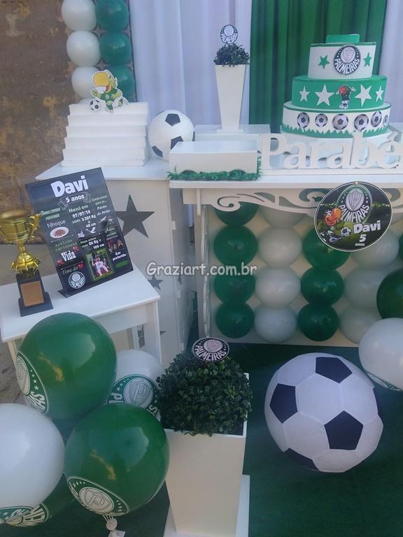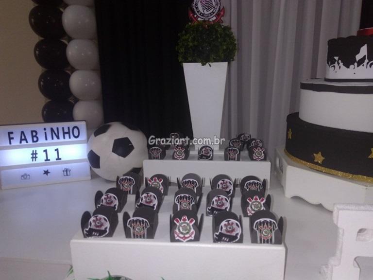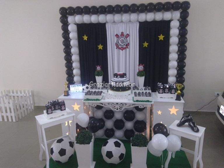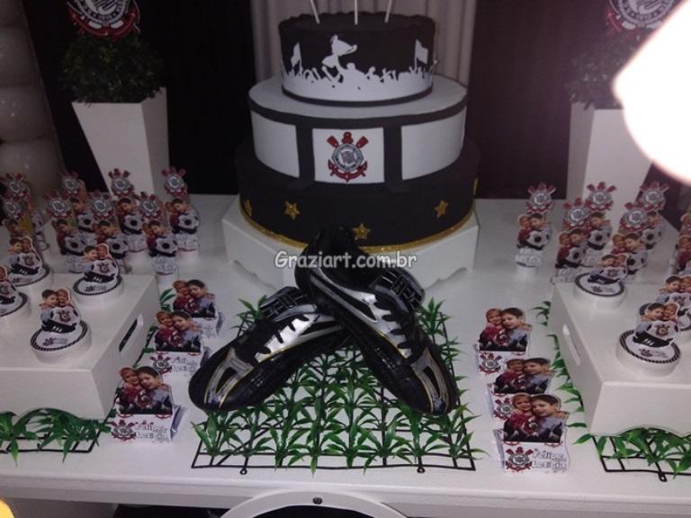 Partindo do tema futebol, podemos personalizar sua festa com as cores e símbolos, do time preferido do seu filho: Corinthians, São Paulo , Santos , Palmeiras. Fazemos também o bolo cenográfico, convites, personalização de doces.
