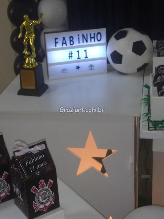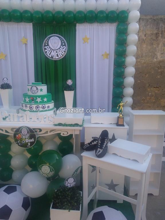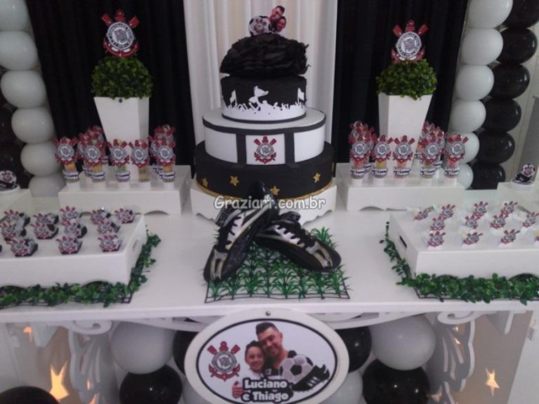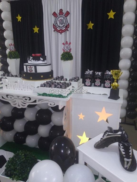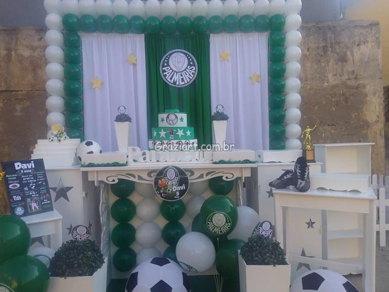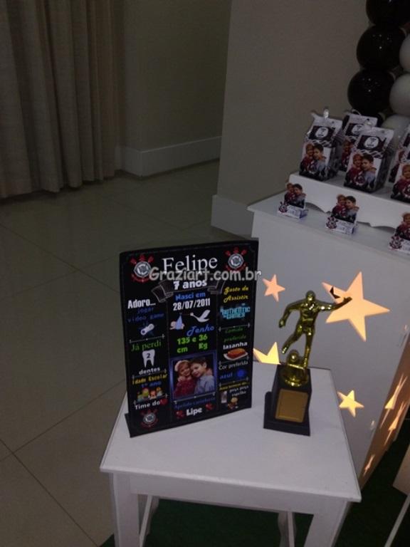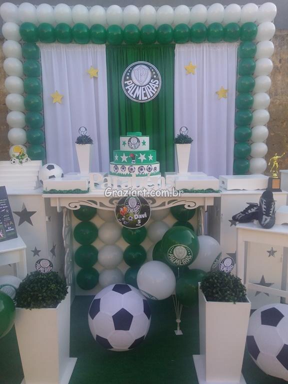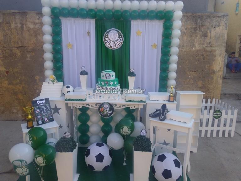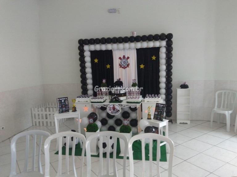 Partindo do tema futebol, podemos personalizar sua festa com as cores e símbolos, do time preferido do seu filho: Corinthians, São Paulo , Santos , Palmeiras. Fazemos também o bolo cenográfico, convites, personalização de doces.