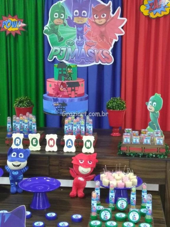Quando o relógio bate à meia-noite, os PJmasks colocam suas roupas de super-heróis para viverem aventuras e desafios incríveis ao redor do mundo. Yoyo quica como uma bola de borracha, Gluglu avança pelos muros sem se machucar ou cair e Bibou voa como um pássaro pelo céu. Nós da Graziart estamos aqui pra fazer parte desta aventura junto com vocês, trazendo pra sua festa estes personagens incríveis, com muitas cores e acessórios.
