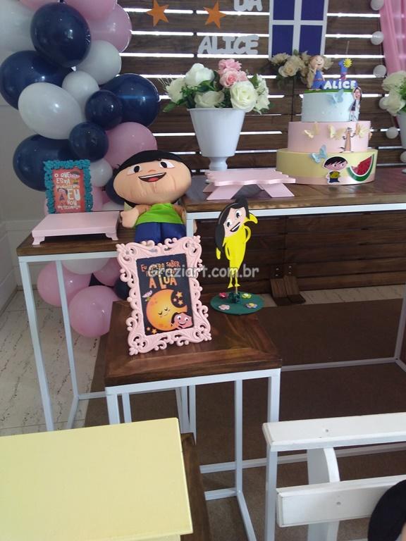 Nessa aventura musical Luna,Júpiter e Cláudio vão responder tudo o que uma pergunta nunca fala em sua festa, mostrando o quanto é importante descobrir de onde e para onde as coisas vem e vão de maneira simples, educativa e divertida, decorações modernas, com cores fortes e também em versão mais delicada com rosa e azul, moveis modernos painel de madeira, criado com muita dedicação.